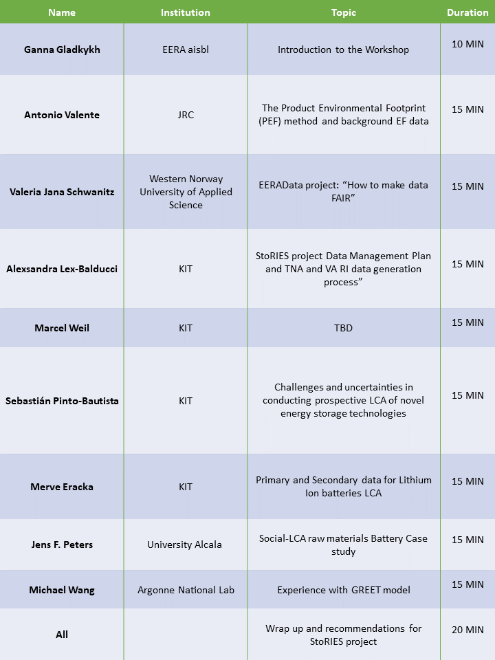 This workshop aims to mobilize a community of researchers and practitioners working on the energy storage technologies’ sustainability assessment to improve understanding of how the StoRIES project can contribute to populating Open Access database.